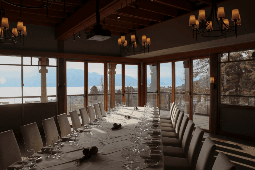 The Stewart Family Room is an ideal setting for private dinners, meetings, or seminars, offering panoramic views, premium hospitality, and award-winning cuisine in a refined, private space suited to smaller groups.